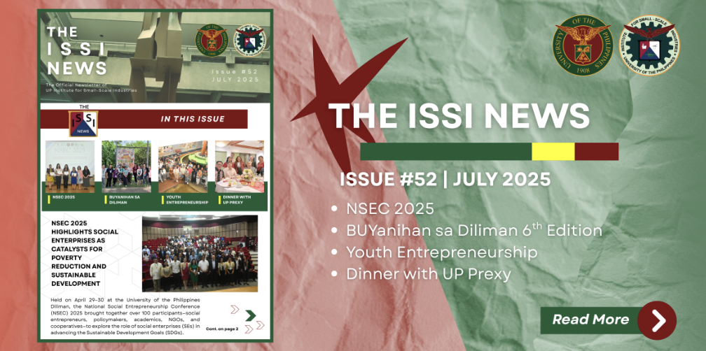 The Institute for Small-Scale Industries was established on March 2, 1966 through a bilateral agreement between the Republic of the Philippines and the Government of the Kingdom of the Netherlands. Its principal objective then as now was to assist and promote the development and growth of the small scale industrial sector in the Philippines. Originally set up as the training institute for the Philippine small industries, it gradually built up its capabilities and expanded its activities to include research, extension, and information programs. On August 4, 1969, the Institute was established through Republic Act No. 6041 as a research and extension unit of the University of the Philippines. The Institute had its permanent home with the completion of the four storey E. Virata Hall in 1986. From then, UP ISSI conducted several consultancy training courses, seminars, technical studies in the field of medium and small-scale industries with emphasis on Philippine industries.